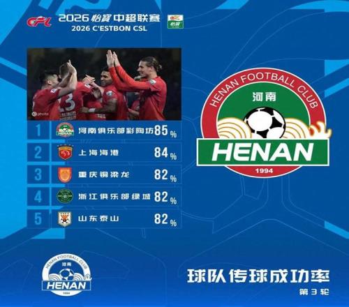中超三轮战罢,河南队2胜1平,拿到7分之后,填满了-6分的坑,积1分,在积分榜排名第9。3月23日,中超联赛第3轮传球成功率榜单出炉,河南队以85%高居榜首,力压上海海港、重庆铜梁龙、浙江队和山东泰山。这样的表现,哪里像一支保级队的表现?